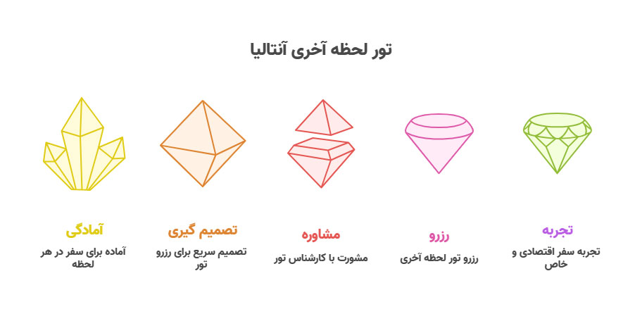 نکته مهم: تور لحظه آخری یعنی تاریخ حرکت نزدیکه و باید آماده باشی اگه پاسپورتت اعتبار داره و مدارک آماده ست، میتونی با یه قیمت عالی بری سفر.